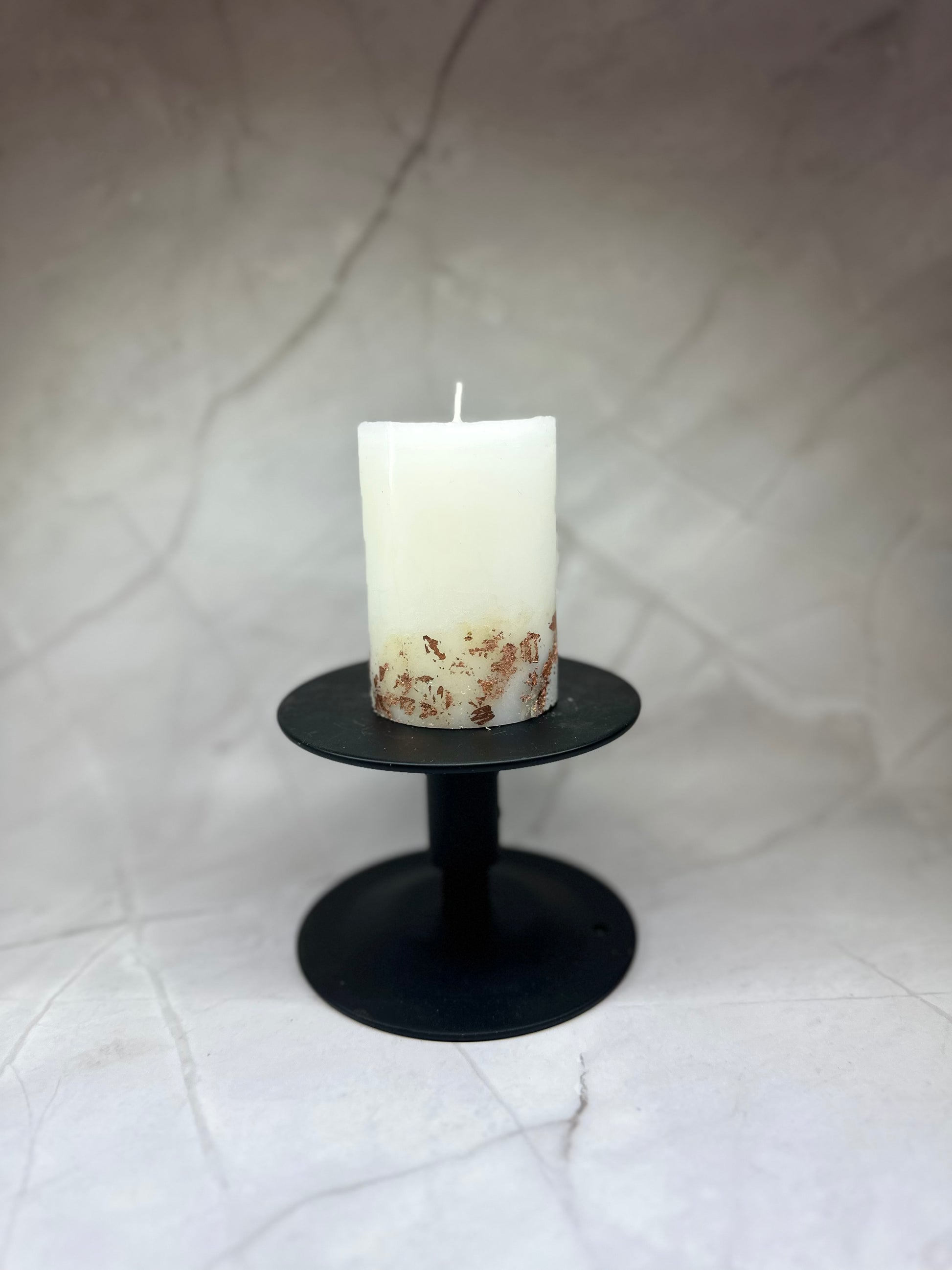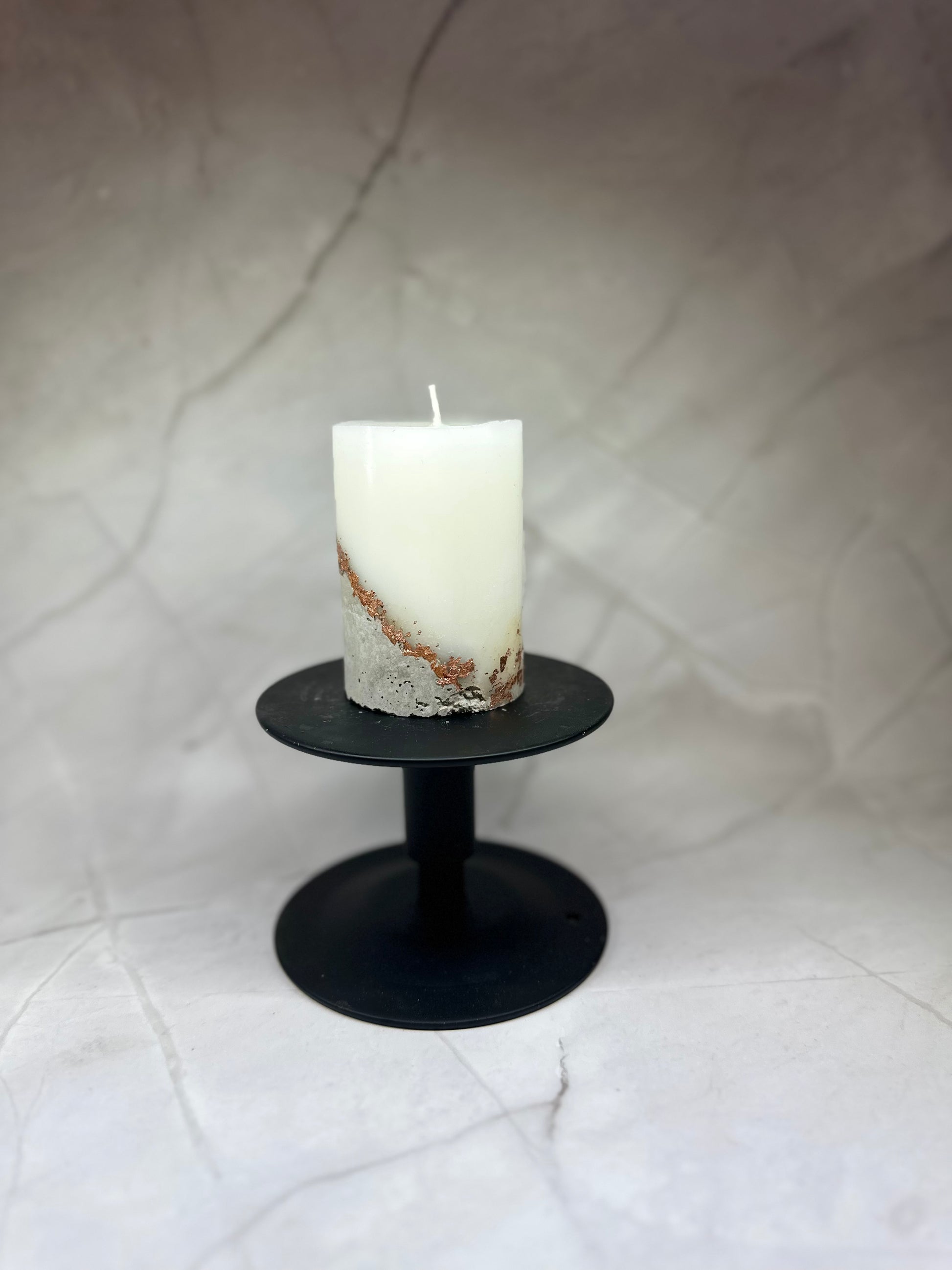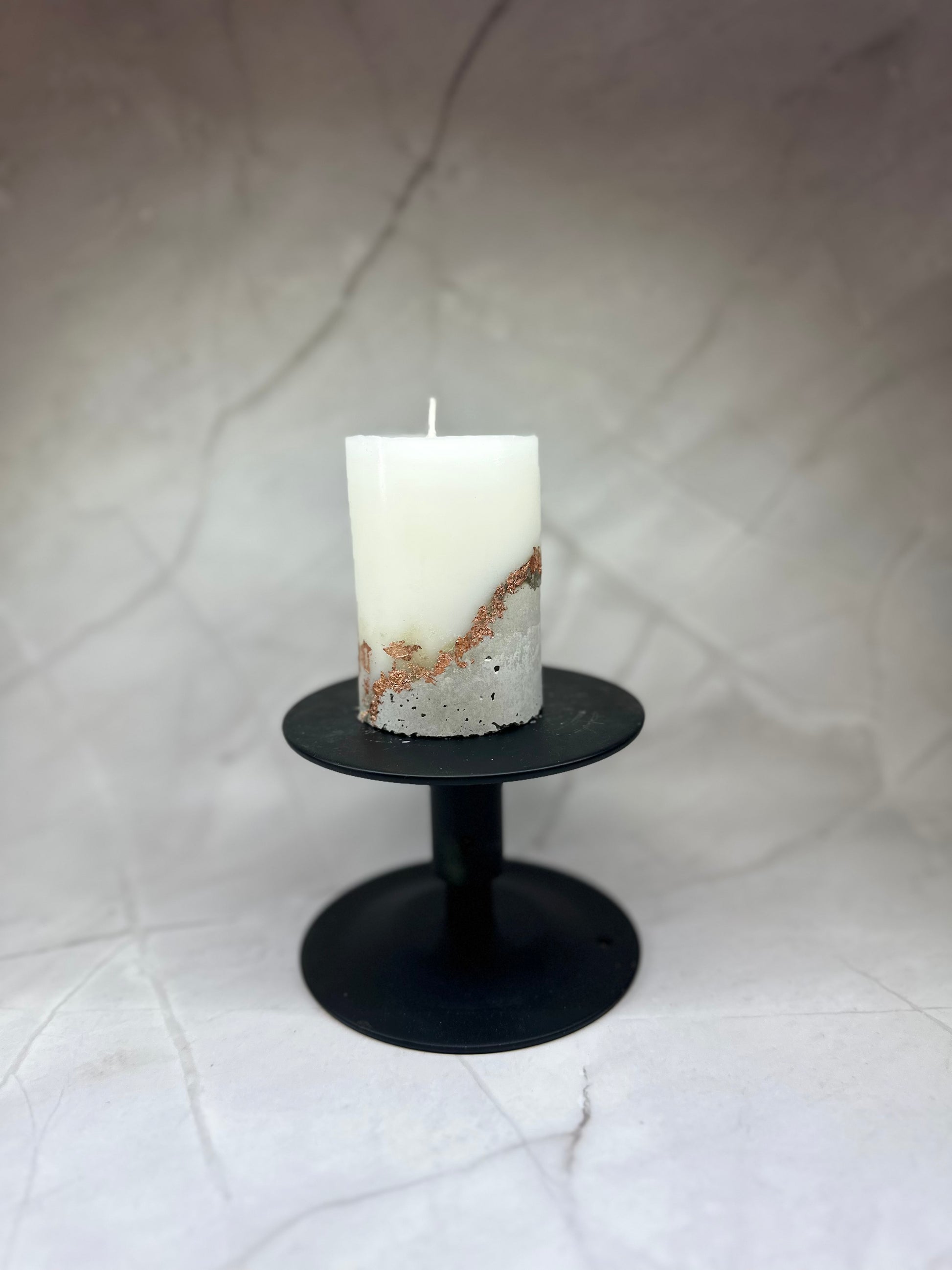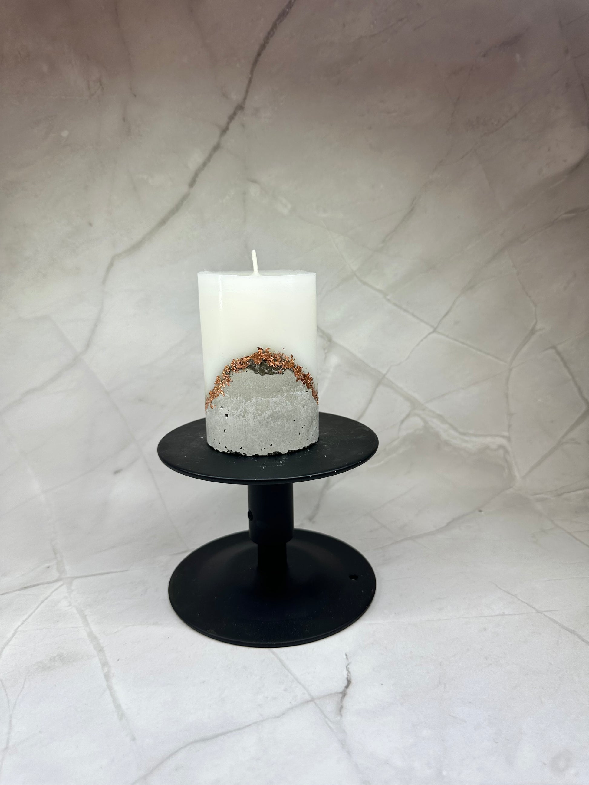 Offrez à votre intérieur une touche de sophistication brute avec cette bougie artisanale unique. Son élégante cire contraste subtilement avec une base en béton naturel, symbole d’authenticité et de modernité. Une délicate ligne de dorure, finement appliquée à la main, souligne la rencontre entre les deux matières et évoque le charme de l’imperfection minérale.