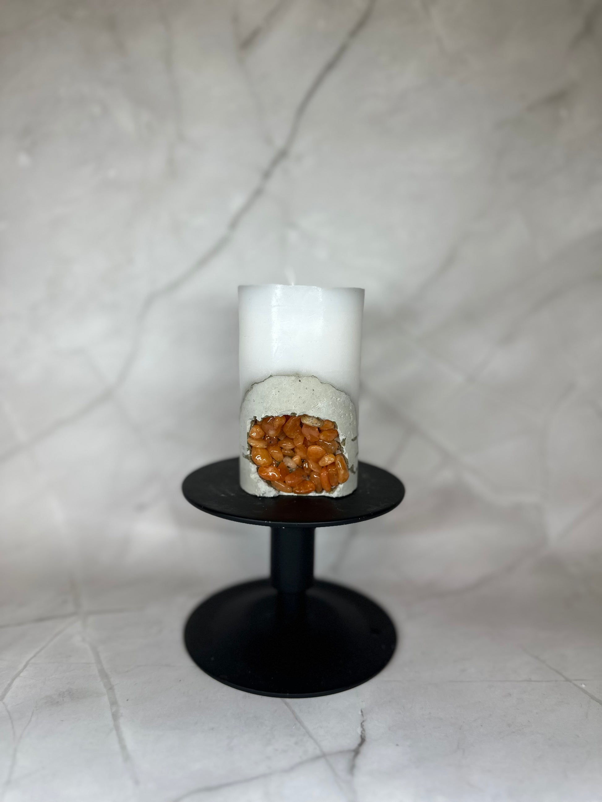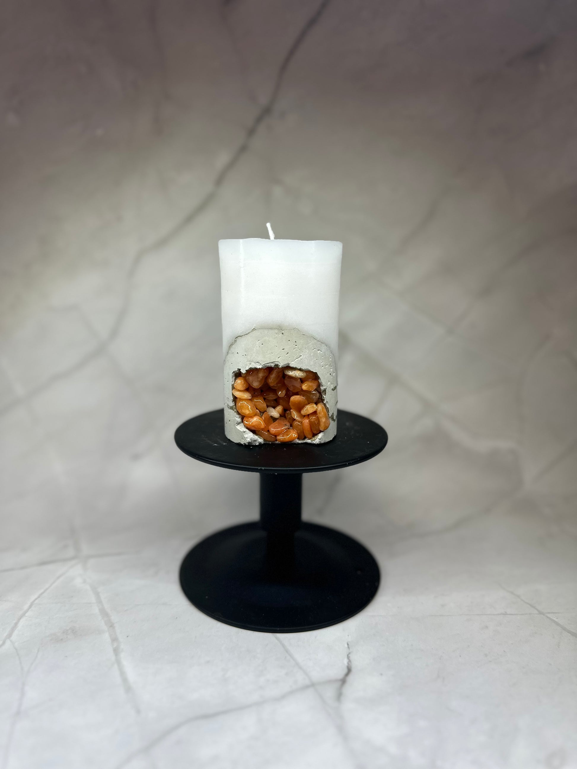 Cette bougie exceptionnelle de la collection estivale « Marée de souvenirs » ne contient ni coquillages ni sable, mais renferme un trésor d’un autre genre – de véritables cristaux d’aventurine orange. Leur éclat subtil et leur teinte vive s’accordent parfaitement avec les couleurs de la mer et de la nature estivale, tout en apportant une touche spirituelle et originale à la bougie.